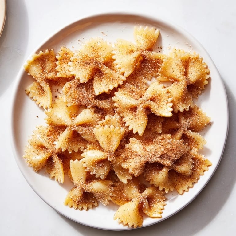 - 250 g Farfalle (Schleifchennudeln): Die Form hält die Zimtzuckermischung besonders gut fest, aber Penne oder Fusilli funktionieren genauso.