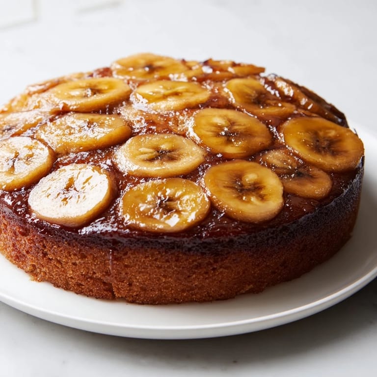 Merken Ein dekadenter Twist des klassischen Bananenbrots, dieser feuchte Kuchen besticht durch karamellisierte Bananenscheiben auf einer zarten, geschmackvollen Krume. Perfekt, um reife Bananen zu verwerten, ist er ein Hingucker-Dessert oder Brunch-Leckerbissen.
