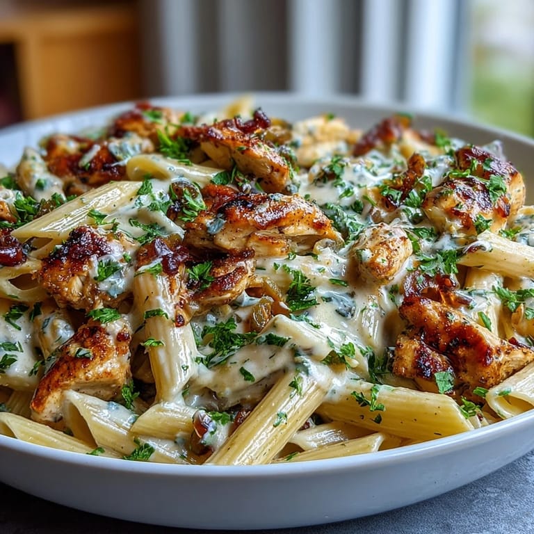 - Penne or rotini pasta (12 oz, uncooked): Short shapes trap the creamy sauce beautifully; cook it separately so it stays al dente instead of turning mushy.