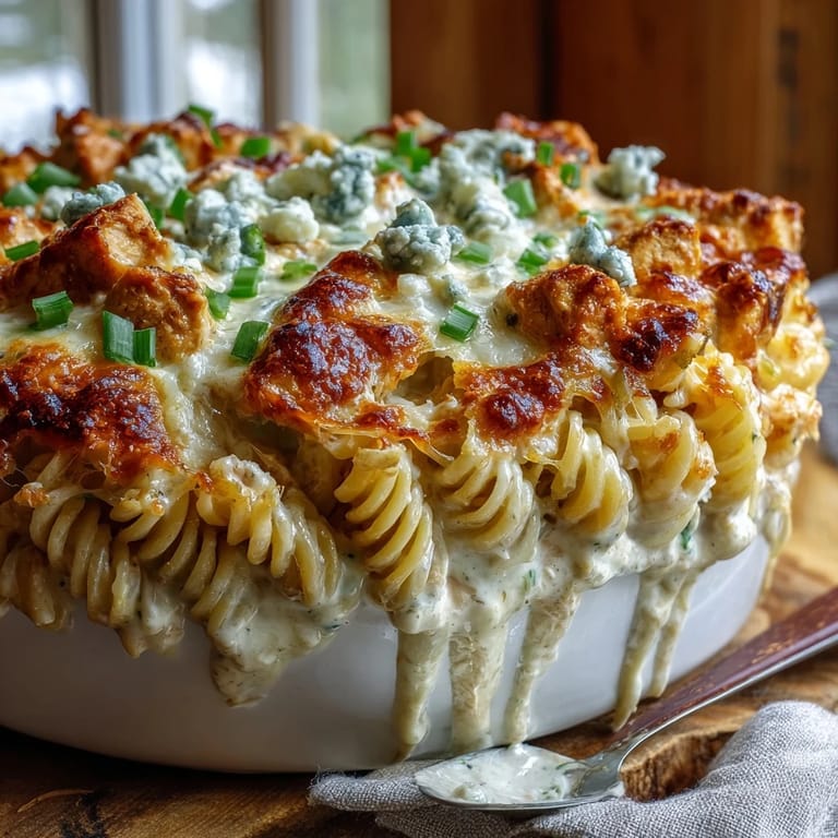 Merken My neighbor showed up at my door one Tuesday with a casserole dish and a knowing smile—she'd made this buffalo ranch chicken pasta bake for a potluck and couldn't stop talking about it. I was skeptical at first, thinking it sounded like too many bold flavors fighting for attention, but one forkful changed everything. The way the creamy ranch base mellowed the buffalo heat while the melted cheese pulled it all together felt like someone had finally figured out the formula for comfort food that doesn't apologize for being a little spicy.