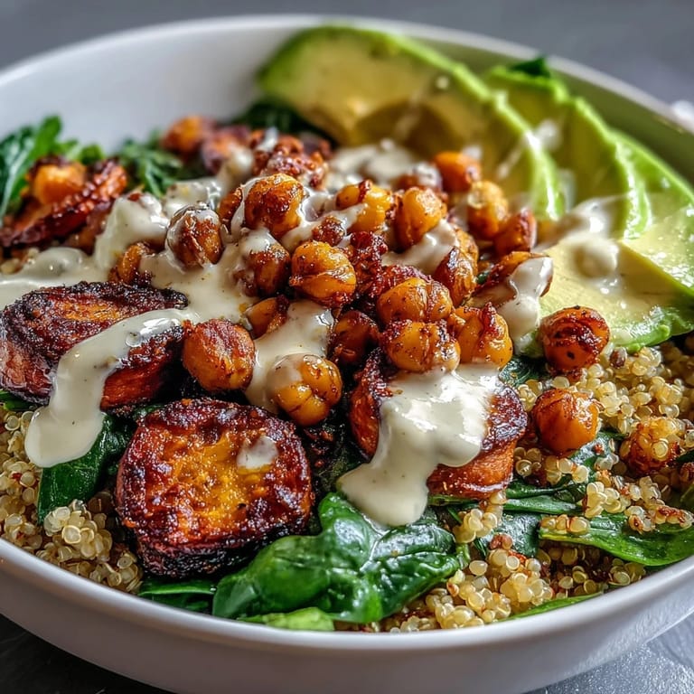 Merken Ich entdeckte diese Schüssel an einem grauen Wintertag, als mir jede Mahlzeit schwer im Magen lag. Die Kombination aus warmen Süßkartoffeln und erfrischendem Spinat fühlte sich wie eine innere Umarmung an. Mittlerweile ist dieses Bowl zu meinem Ritual geworden, wenn mein Körper nach etwas Befreiendem schreit.