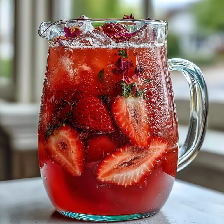 - Fresh strawberry slices, lemon wheels, edible rose petals, fresh mint, and ice (for garnish): These transform the pitcher from a drink into something people want to photograph, and honestly, that matters when you're serving something this pretty.