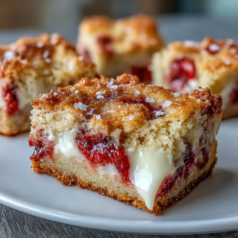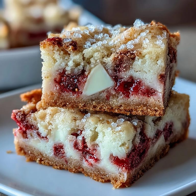 Merken Last summer, my neighbor brought over a pan of these strawberry cookie bars still warm from her oven, and I was completely won over by that first bite—soft, buttery, studded with bright berries and white chocolate that melted on my tongue. I immediately asked for the recipe, made them the next day, and haven't looked back since. There's something about the combination of fresh fruit and creamy chocolate in a simple bar form that feels both fancy enough for a garden party and casual enough for a Tuesday afternoon. Now whenever strawberries are in season, these are the first thing I reach for.