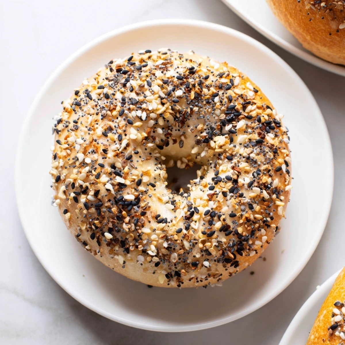 Everything bagel seasoning is the obvious choice, but these bagels are a blank canvas. I've made them with just coarse salt and cracked pepper, topped them with za'atar, or gone savory with furikake. The dough is neutral enough that it plays well with almost anything you want to pile on top.