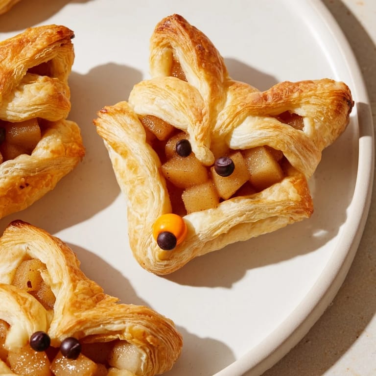 Merken Verspielte, zarte Gebäckstücke in Fuchsform, gefüllt mit gewürzten Äpfeln und Birnen – perfekt für Herbsttreffen oder als spaßige Leckerei für die Familie.