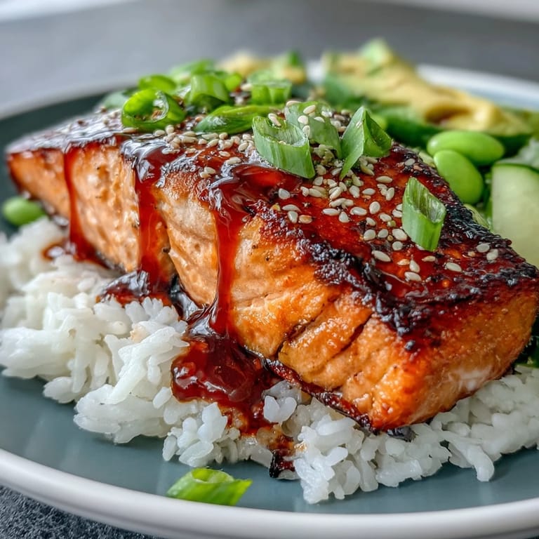 Merken One Tuesday evening, I was standing in my kitchen wondering what to make when my roommate came home raving about this salmon bowl she'd had at a new restaurant downtown. She described the glaze so vividly—sweet, spicy, sticky—that I immediately started mentally rearranging what I had in my pantry. Turns out, honey and sriracha were already there, along with some salmon I'd been meaning to cook. By the time she got back from changing clothes, dinner was nearly ready, and she laughed because I'd somehow recreated her lunch for our dinner. That night, this bowl became our go-to when we wanted something that felt fancy but didn't demand hours of effort.