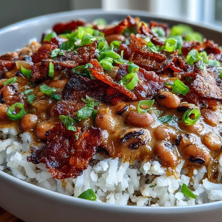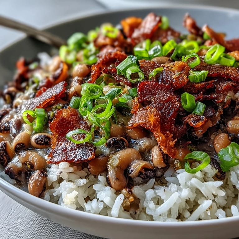 Merken My grandmother's kitchen always smelled like bacon grease and woodsmoke on New Year's Eve, the air thick with anticipation as she'd start her Hoppin John hours before midnight. She swore by the tradition—black-eyed peas for prosperity, greens for wealth, cornbread for gold—and honestly, whether the superstition worked or not, the dish itself felt like an invitation to something better. The first time I made it alone, I burned half the bacon and somehow still ended up with something that tasted like home. That's when I realized this isn't a fussy recipe; it's forgiving, honest, and deeply satisfying in the way Southern food should be.