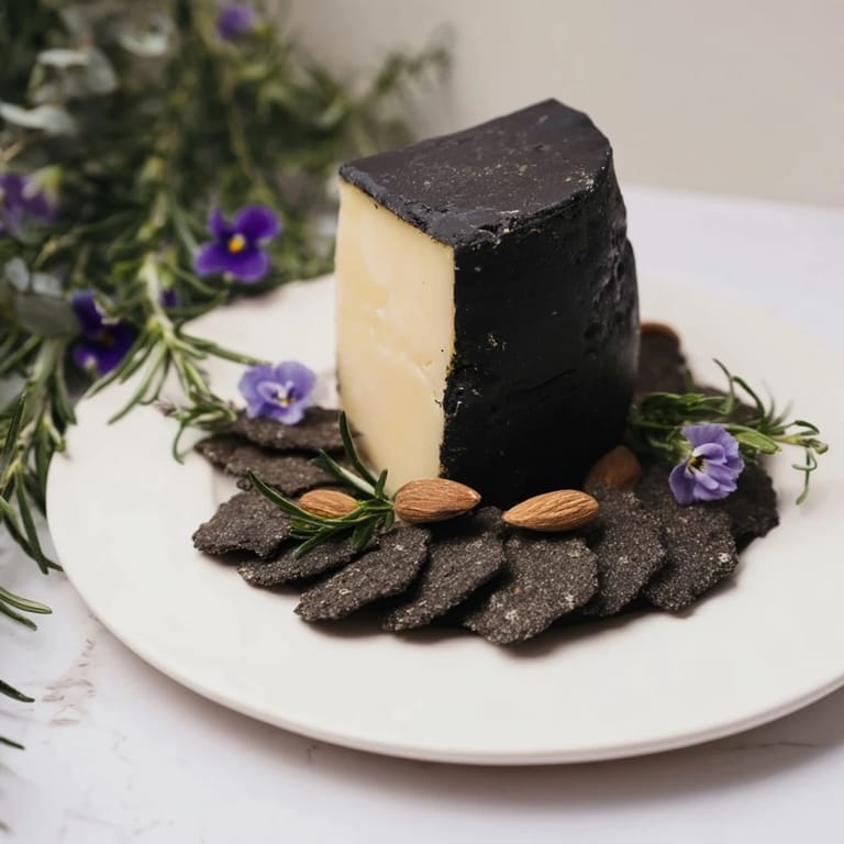 Schwarz ist nicht traurig, es ist mutig. Im gleichen Moment, in dem ich andere Käseplatten sah, die alles mischten, Wurst, Trauben, Honig, wollte ich etwas, das eine Stimme hat. Der schwarzwachsbeschichtete Cheddar ist diese Stimme, laut und klar. Die Cracker und Mandeln sind nicht Beiwerk, sie sind die Bühne, auf der der Käse steht.