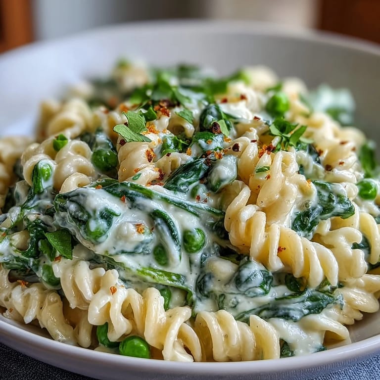 Solltest du keine Erbsen da haben, funktionieren kleine Brokkoliröschen genauso – sie brauchen nur ein bis zwei Minuten länger, bis sie zart sind. Anstelle von Spinat machen sich auch Rucola oder Baby-Kale toll, die bringen einen würzigeren Biss. Wenn du etwas mehr Schärfe magst, streu am Ende ein paar Chiliflocken drüber – probier einfach aus, was dein Kühlschrank so hergibt.