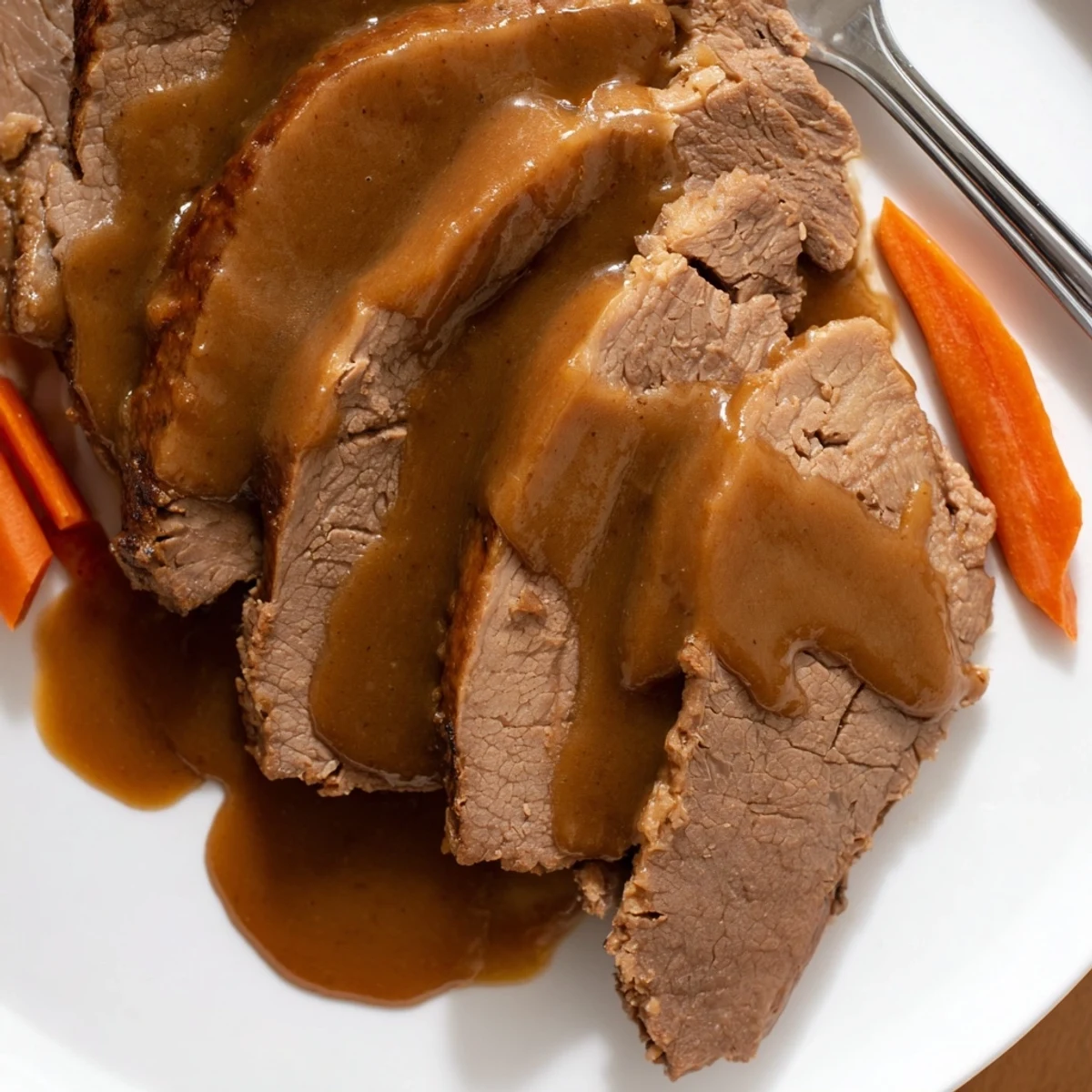 - Abdecken und im vorgeheizten Backofen bei 160°C etwa 2,5–3 Stunden schmoren, gelegentlich wenden, bis das Fleisch zart ist.