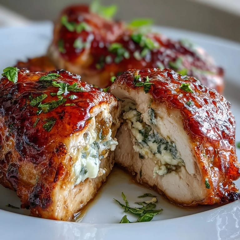 Merken There's something magical about the moment when melted ricotta cheese starts seeping out the sides of a golden chicken breast, especially when it's crowned with that glossy, spicy-sweet glaze. My kitchen smelled like a bustling Italian-American fusion dream the first time I experimented with this combination—a happy accident born from having leftover ricotta and a jar of hot sauce that needed a purpose. What started as improvisation became the dish I now make whenever I want to impress someone without spending hours in the kitchen, or honestly, when I just want to feel like I'm eating something fancy on a Tuesday night.