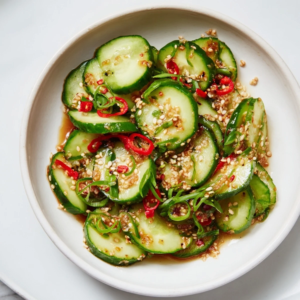 Ich habe diesen Salat neben Grillhuhn, mariniertem Tofu, sogar über warmen Reis serviert. Jede Kombination funktioniert, weil dieser Salat nicht konkurriert – er hebt alles an. Du kannst auch dünn geschnittene Radieschen oder Karotten hinzufügen, wenn du möchtest, dass es noch knackiger wird, oder ein paar Tropfen Limettensaft zusammendrücken, wenn du es noch säuerlicher magst.