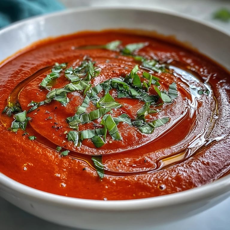 Ich erinnere mich, wie ich diese Suppe an einem regnerischen Mittwochabend für Freunde gemacht habe, die unerwartet vorbeikamen. Sie hatte gerade genug Zeit zum Köcheln, während wir am Tisch saßen und quatschten, und das Haus füllte sich mit diesem wunderbar einfachen Tomaten- und Basilikumaroma. Als ich die Schalen hineinstellte, war es einer dieser stillen, zufriedenen Momente – niemand sagte viel, sie konzentrierten sich nur auf das Essen. Das war der Moment, als ich verstand, dass die besten Rezepte oft die sind, die ihre Arbeit leise verrichten.