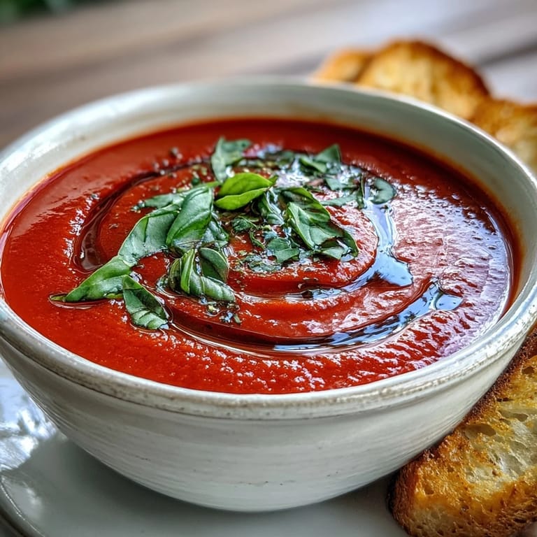 Merken An meinem ersten Hochzeitstag überraschte ich meinen Mann mit dieser Suppe, serviert in feinen Porzellantassen als Vorspeise eines selbst gekochten Menüs. Während wir im Kerzenschein speisten, gestand er mir, dass er eigentlich nie ein großer Fan von Tomatensuppe war – bis zu diesem Moment. Es gibt dieses besondere Glücksgefühl, wenn ein einfaches Gericht jemanden überzeugt, der skeptisch war. Jetzt bittet er regelmäßig darum, besonders wenn der Herbstwind an den Fenstern rüttelt.