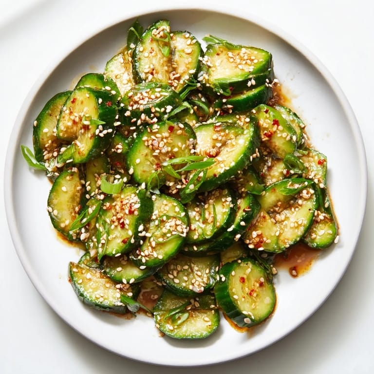 Merken Ich entdeckte dieses Rezept an einem heißen Sommertag, als ich verzweifelt nach etwas Erfrischendem suchte, das ich schnell zusammenwerfen konnte. Eine Freundin schrieb mir von einem viralen Rezept, das sie auf Social Media sah—ein Gurken-Salat mit einer magischen Sojasesam-Vinaigrette, die man einfach schüttelt. Skeptisch, wie ich war, probierte ich es an einem Freitag nach der Arbeit, und innerhalb von Minuten war ich verliebt. Der Knackfaktor, die ausgewogene Schärfe und dieser herrliche umami-reiche Geschmack machten es zum perfekten schnellen Begleiter an Tagen, an denen ich keine Lust auf komplizierte Küche hatte.